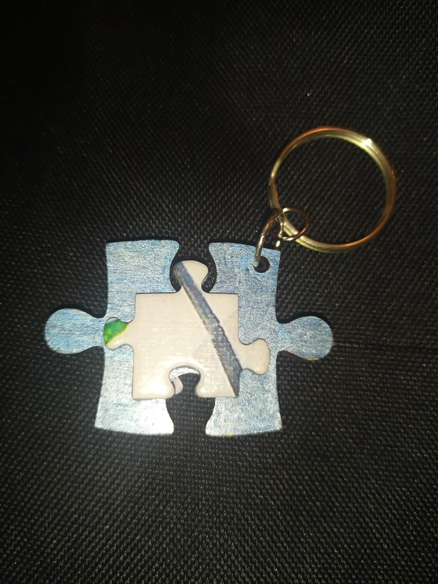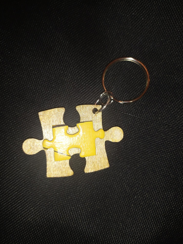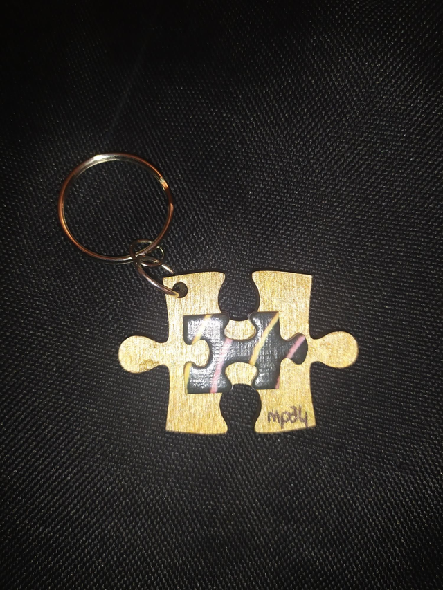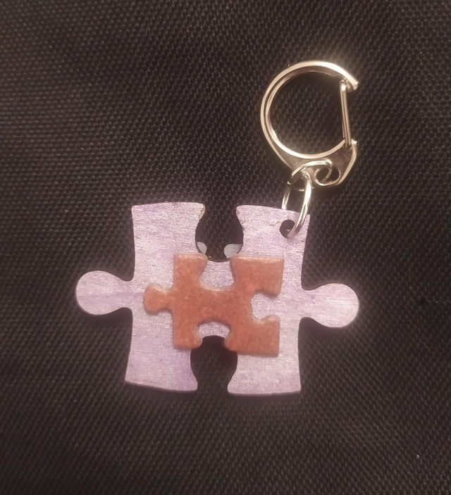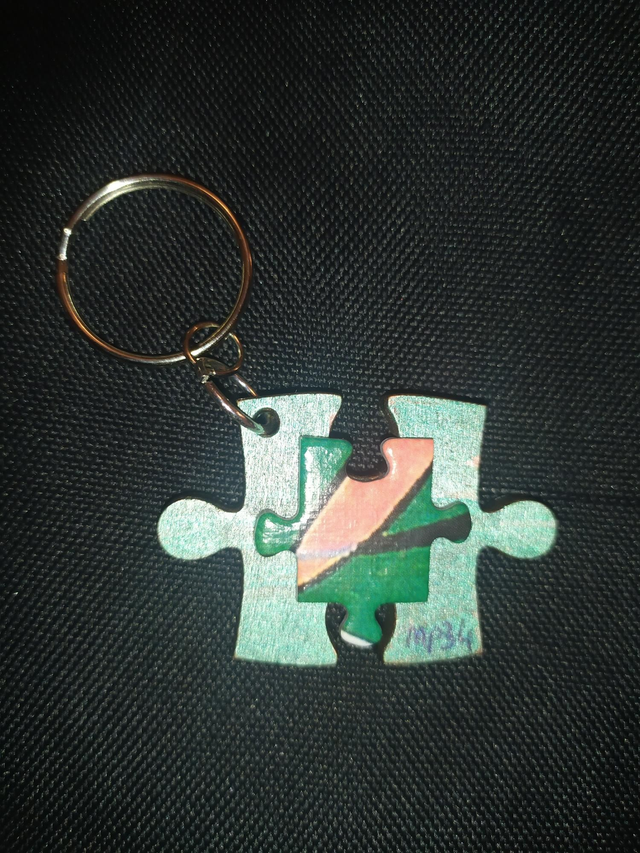 Porte-clefs en bois, peint à la main, orné sur les deux faces d'une pièce de puzzle ! Le tout est vernis avec un vernis-colle sans solvant. Existe en plusieurs coloris. Attache mousqueton ou anneau selon disponibilité (aléatoire).